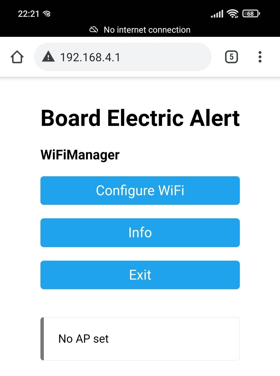 วิธีการใช้งานการตั้งค่า WiFi ด้วย WiFimanager ก็ให้ใช้มือถือ หรือ Notebook เชื่อมต่อกับ WiFi ของบอร์ดเราครับ ในที่นี้ก็คือ Board Electric Alert และรหัสผ่านก็คือ password ที่เราได้ตั้งไว้ใน Code นั่นเอง